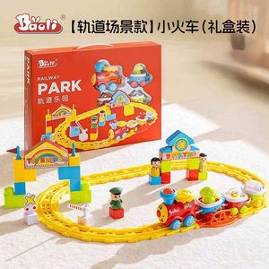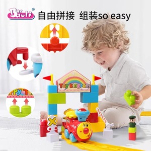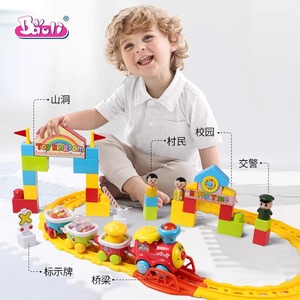 宝丽儿童小火车轨道套装男孩3岁宝宝礼物diy拼装益智电动汽车玩具