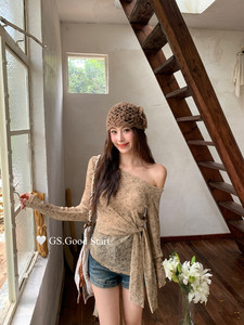 早秋映画档口开爆一直被夸的款气质小女人扎染绑带收腰小衫6288