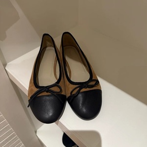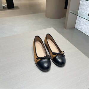 羊皮版~新款蝴蝶结浅口芭蕾鞋女真皮百搭圆头拼接一脚蹬平底单鞋