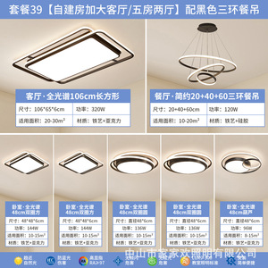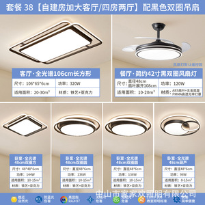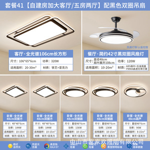 护眼套餐45【自建房加大客厅-6房3厅】大客厅+黑三环餐吊+黑双圈风扇