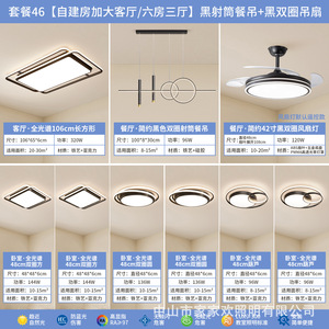 护眼套餐46【自建房加大客厅-6房3厅】大客厅+黑射筒餐吊+黑双圈风扇