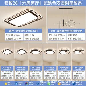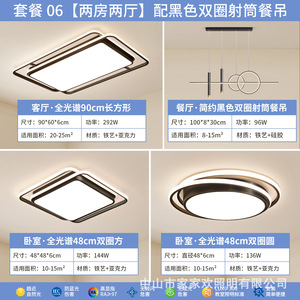 护眼套餐22【常规6房3厅】中客厅+黑三环餐吊+黑双圈风扇
