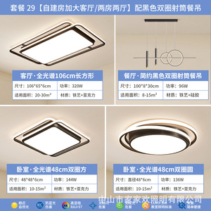 护眼套餐33【自建房加大客厅-3房2厅】大客厅配黑色双圈射筒餐吊