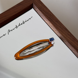 复古法式蓝色方糖高级感珍珠bb夹简约百搭侧边夹碎发发夹发饰新款
