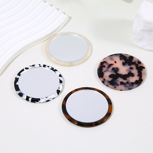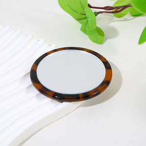 现货小镜子醋酸圆形简约随身玳瑁色logo印刷便携手持多色补妆镜