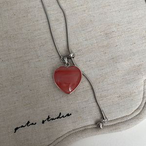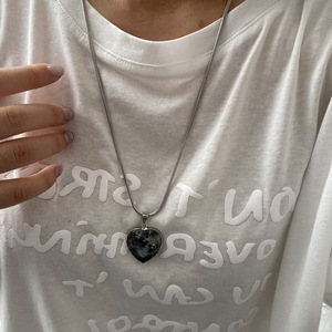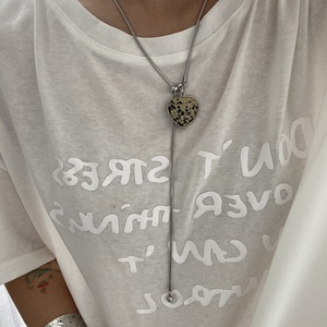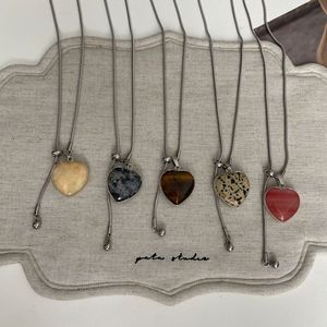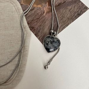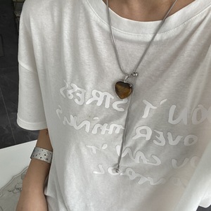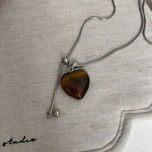 时髦设计感虎眼石抽拉项链天然石双面爱心个性小众博主同款项链女