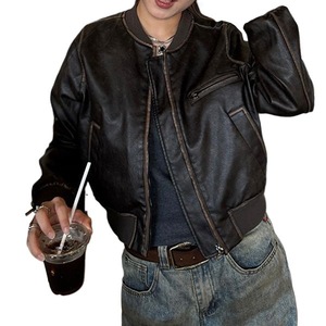 手工擦旧美式短款机车皮衣夹克女新款复古美拉德外套长袖百搭上衣