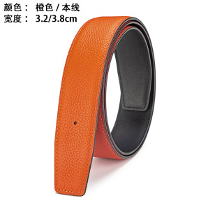 尖头爱马男仕替换带单面荔枝纹男士真皮头层牛皮皮带H扣替换腰带