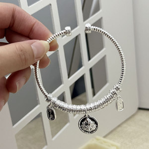 2025白铜高级黄财神盘缠手镯女新中式国风手环吉言复古镯子生日礼