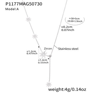 P1177-A钢色八芒星锆石项链50+5cm