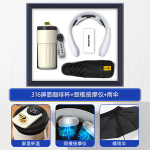 【咖啡杯+3C充电宝+颈椎仪+网红伞】灰色四件套