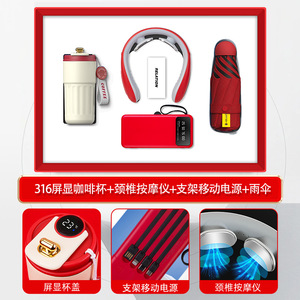 【咖啡杯+3C充电宝+颈椎仪+网红伞】红色四件套