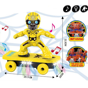 跨境抖音同款蜘蛛翻滚侠灯光特技滑板车电动蜘蛛人滑板车儿童玩具