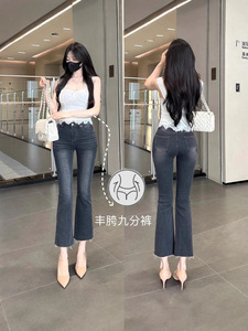 丰胯九分裤~微喇叭牛仔裤灰色修身百搭丰胯牛仔裤直筒秋季新款潮