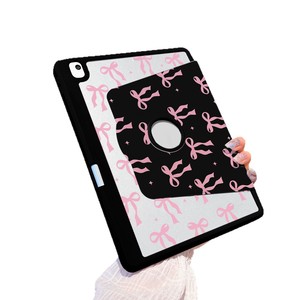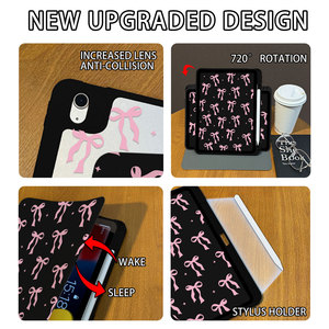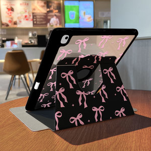 跨境粉色蝴蝶ipad保护套露标720°旋转平板保护壳防摔可爱ipad壳