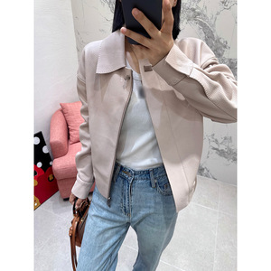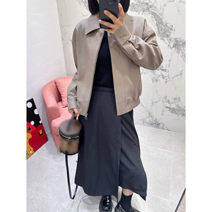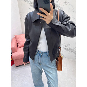 2025早秋新品真皮荔枝纹翻领金属纽扣夹克外套极简主义百搭时尚潮
