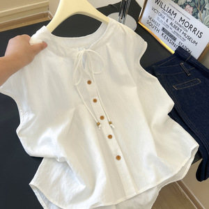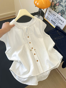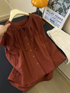 广州十三行高货爆款~2025夏新款时尚舒适领口系带小飞袖衬衫短袖