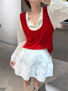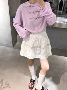 现货 2025夏季新款设计师品牌百搭简约蕾丝拼接宽松A字半身裙短裙