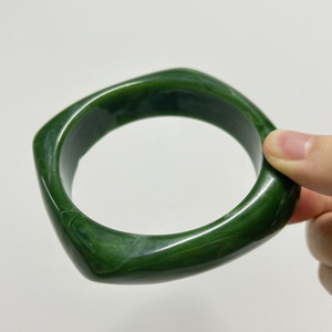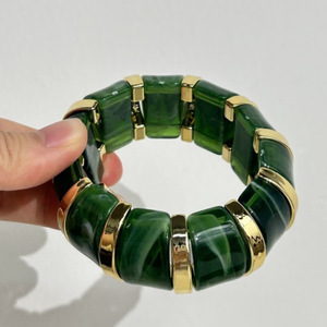 2025 欧美绿色晕染几何不规则树脂手镯 个性复古夸张不规则手环
