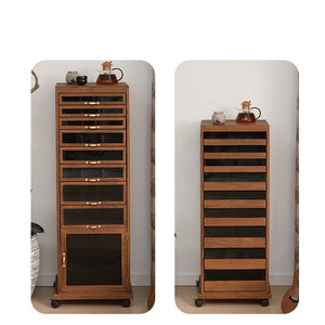 新款胡桃色实木无贴皮牙科柜文玩珠宝茶具茶杯收纳柜落地茶水柜