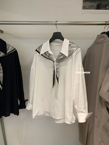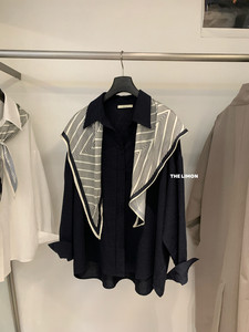 THE LIMON柠檬绿茶秋装女韩版气质宽松显瘦慵懒防晒衬衫(配丝巾)