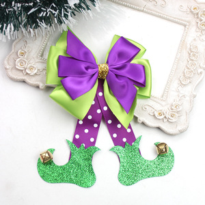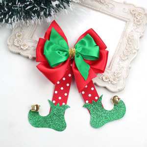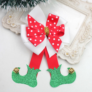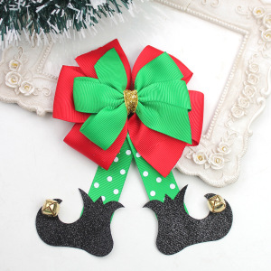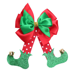 跨境欧美新款圣诞靴子铃铛圆形蝴蝶结 儿童圣诞老人精品趣味发饰