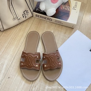 凯旋门拖鞋女夏季时尚外穿2025年新款平底外穿百搭休闲沙滩拖鞋女