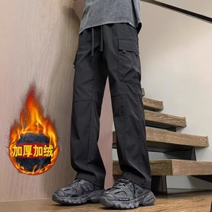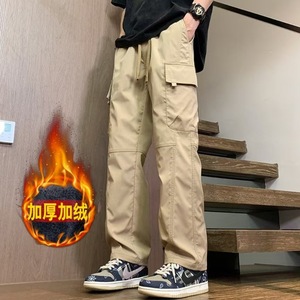 秋冬男士美式加绒工装休闲裤男时尚宽松运动直筒休闲户外冲锋长裤