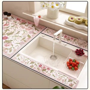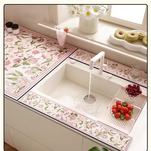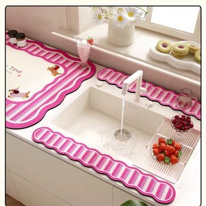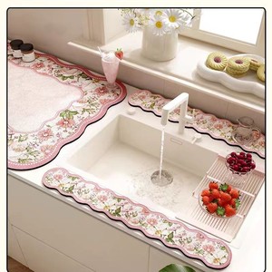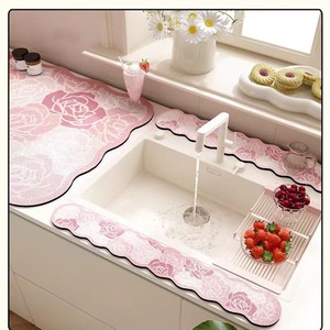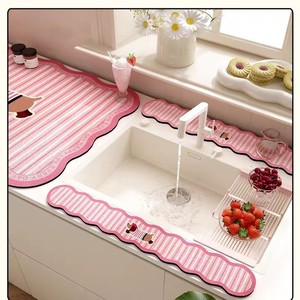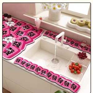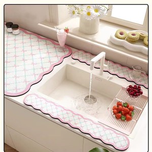 卡通可爱洗手台吸水垫厨房吧台水龙头沥水垫卫生间硅藻泥垫子
