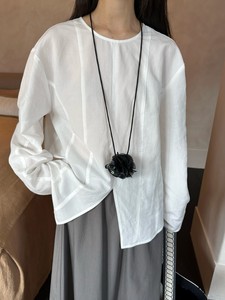 DIGM | 2025秋季极简高级感松弛感开衩天丝亚麻宽松衬衫女A09227