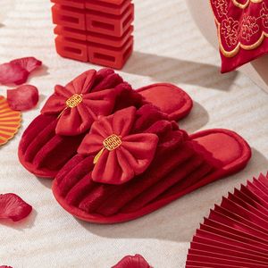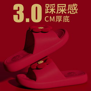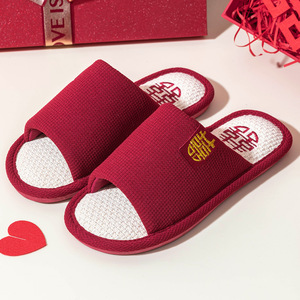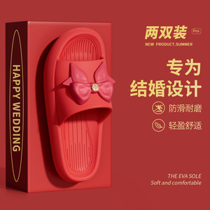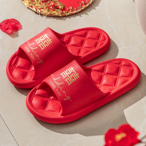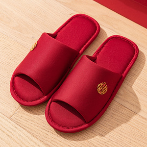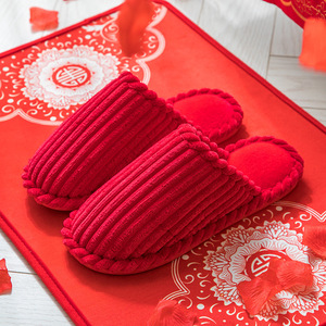 婚庆拖鞋结婚喜庆红色男女情侣秋冬轻奢新婚结婚拖鞋新郎新娘对装