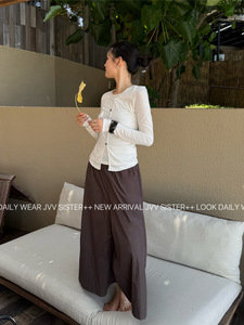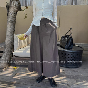 JVV十三行2025秋季新款松紧高腰阔腿直筒八分裤百搭休闲裤女90559