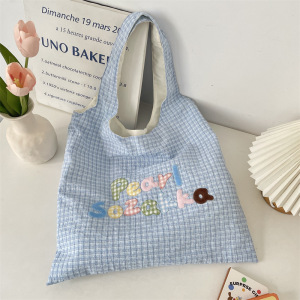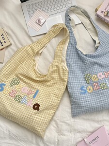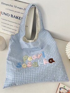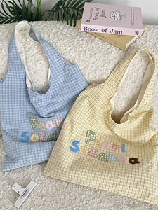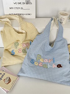 57122 小众韩系彩色字母刺绣格纹单肩包可爱背心腋下包百搭通勤女