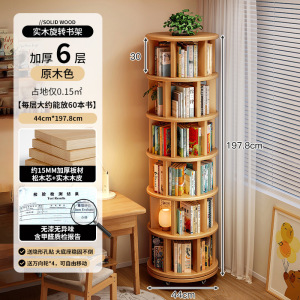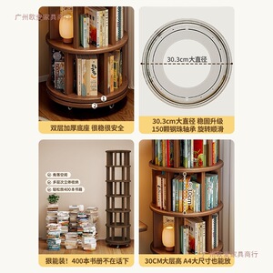 实木旋转书架360度落地移动置物架一体靠墙边小窄柜家用转角书柜