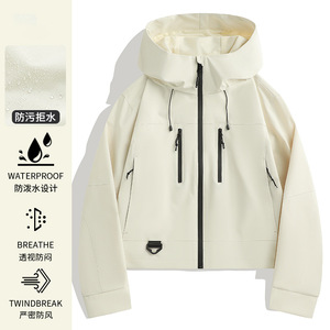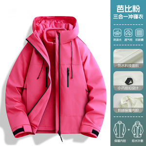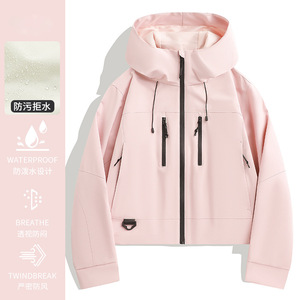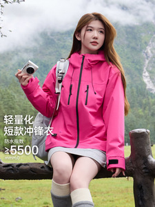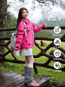 啄木鸟玫红冲锋衣女新三合一户外小个子巨好看春秋气质短款外套潮