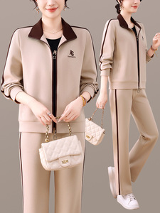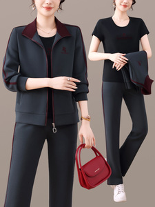 2025春秋新款女装立领拼色休闲套装中老年减龄洋气拉链卫衣三件套