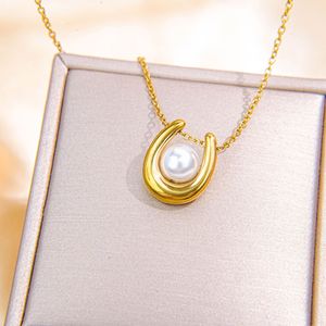 U形珍珠项链气质冷淡风轻奢小众设计法式钛钢镀金吊坠饰品锁骨链