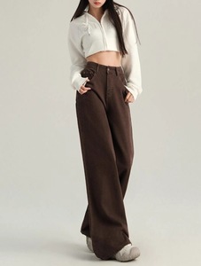 美拉德美式辣妹咖啡色阔腿牛仔裤女春秋小众棕色咖色垂感拖地裤