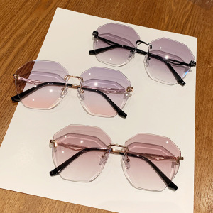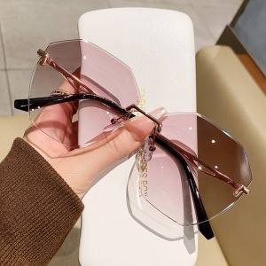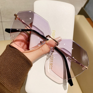无框切边变色太阳欧美女士潮流款渐变色墨镜个性户外旅游遮阳眼镜