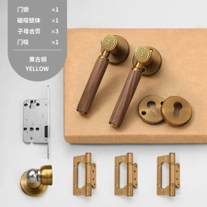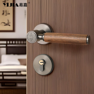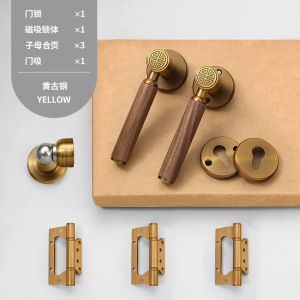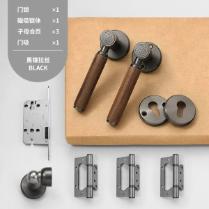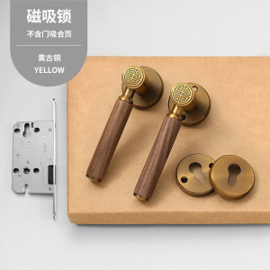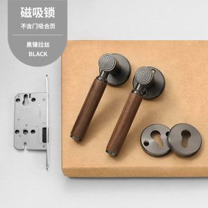新中式复古家用室内门锁卧室卫生间房门锁具磁吸静音胡桃木门把手