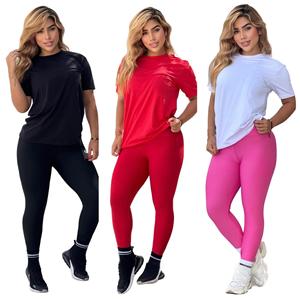 Q6261 新款时尚圆领短袖上衣+高弹速干瑜伽面料长裤套装 现货