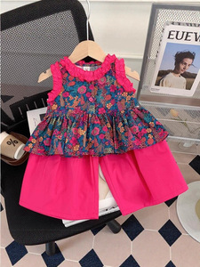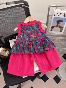 女童套装夏装2025新洋气宝宝无袖碎花上衣+阔腿裤两件套儿童衣服