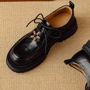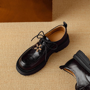 真皮厚底乐福鞋女2025新款春秋季法式单鞋系带jk制服英伦风小皮鞋