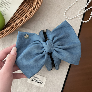 牛仔布艺大号蝴蝶结发夹女2025新款高级感可折叠三角形半扎发抓夹