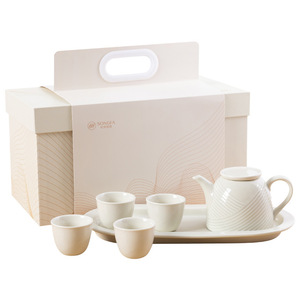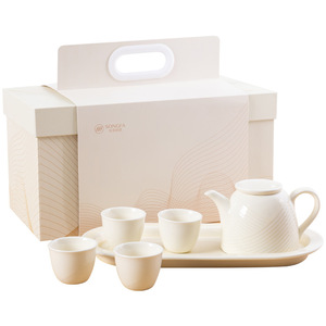 哇噢定 制松发瓷器奶油风青洛功夫茶具家用送礼精品中式茶具套装