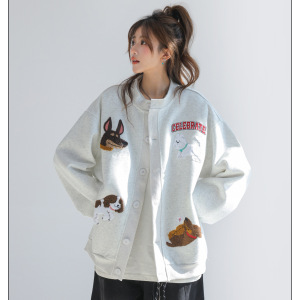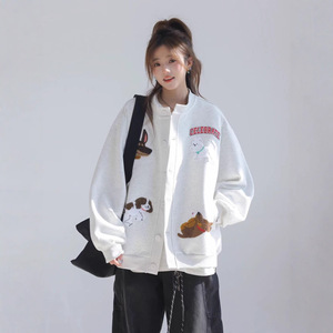 趣味卡通毛巾绣开衫卫衣男女春季美式oversize设计感情侣纽扣外套