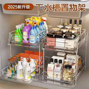 厨房下水槽置物架卫生间洗手台浴室抽屉式杂物收纳架多功能整理架