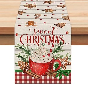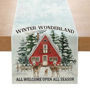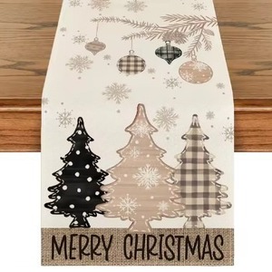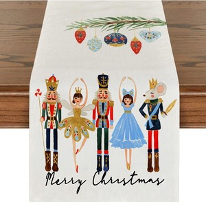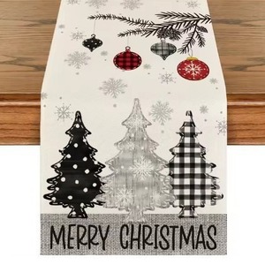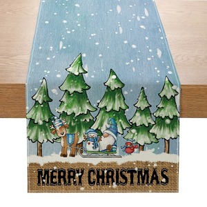 圣诞主题桌旗卡通印花图案桌面长条餐垫客厅厨房餐桌装饰品桌布