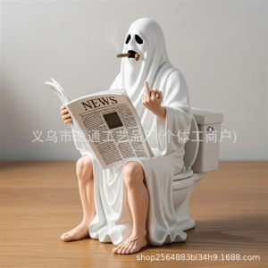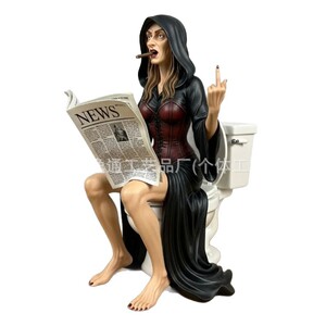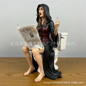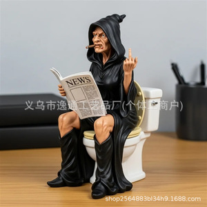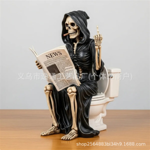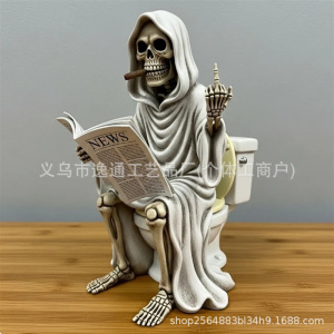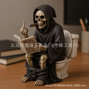跨境新款Toilet Grim Reaper Statue厕所死神雕像万圣节家居装饰