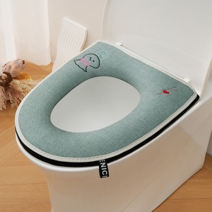代发亚麻绣花拉链马桶垫家用马桶坐垫通用四季款坐便套简约